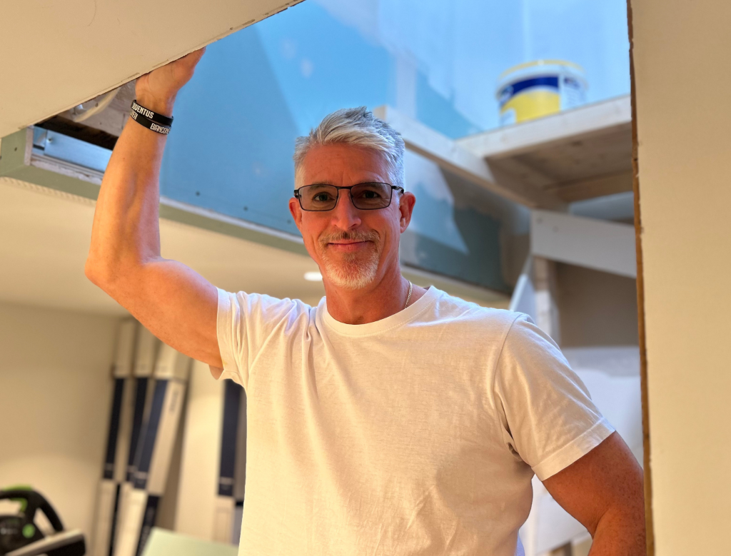 En jättetrevlig snickare som inger trygghet. Han snickrade en väldigt en väldigt fin grind till ett förråd under entren och lade ny trall på balkongen.